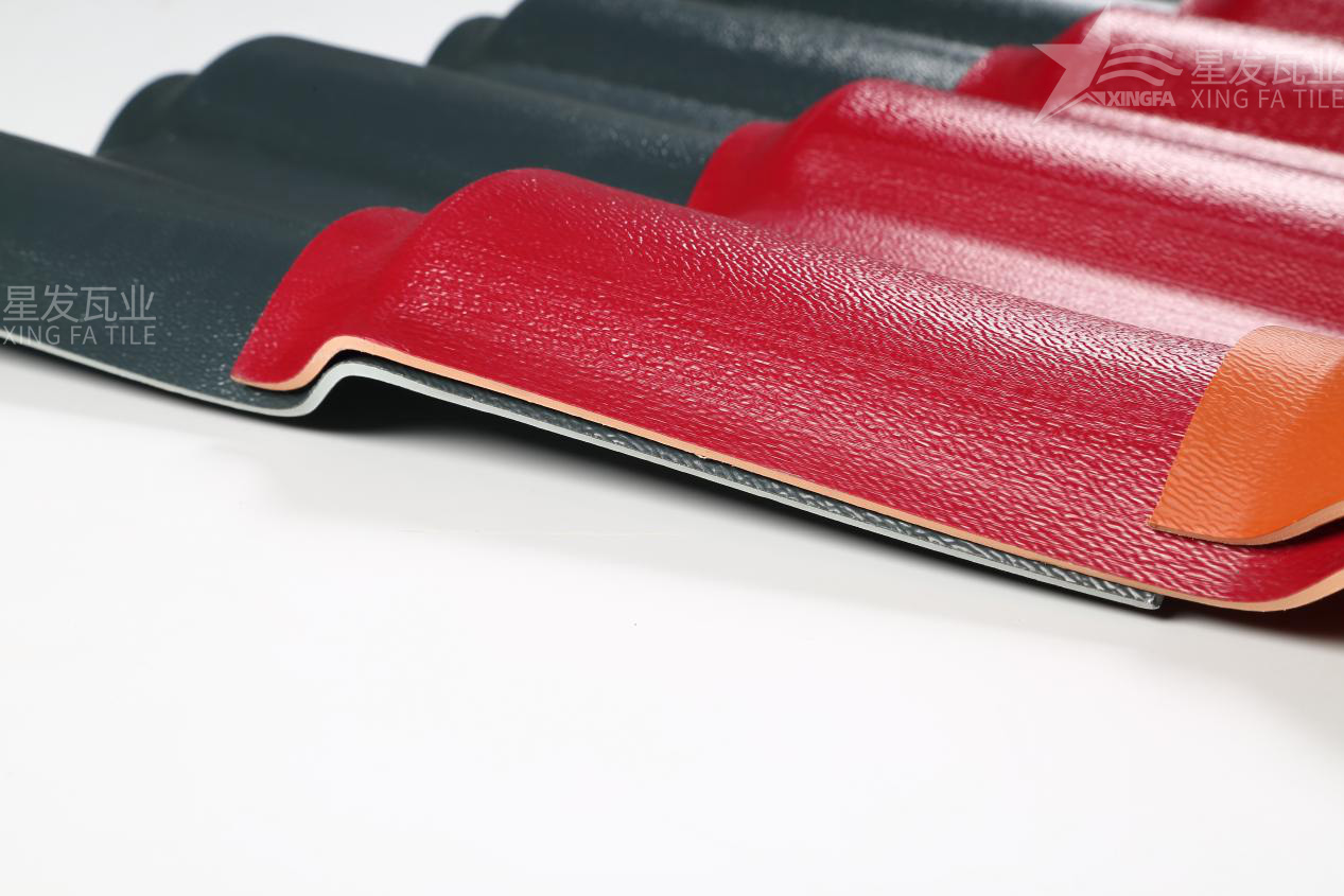 合成樹脂瓦通常由兩層構(gòu)成:上層為抗紫外線和抗老化層,下層為抗沖擊和耐腐蝕層。上層一般由ASA樹脂(丙烯酸酯-丙烯腈-苯乙烯共聚物)制成,具有優(yōu)異的耐候性和抗紫外線性能,可以有效延長(zhǎng)合成樹脂瓦的使用壽命。下層則由PVC(聚氯乙烯)和其他補(bǔ)助材料組成,可以提供合成樹脂瓦的抗沖擊性、耐腐蝕性和其他物理性能。通常,這兩層是通過共擠合成的方式制成,以確保它們的緊密結(jié)合和性能協(xié)調(diào)。