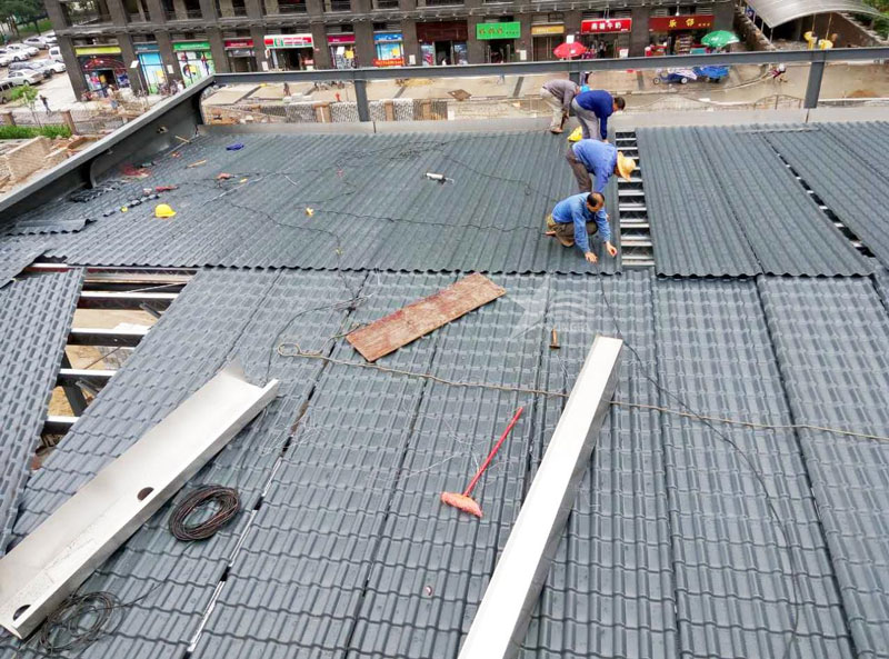 瓦片排列:從屋頂或墻面的底部開始,按照預(yù)定的排列方案一層層地安裝合成樹脂瓦片。使用建筑膠或?qū)S媚z水將每塊瓦片牢固地粘貼在基層上。