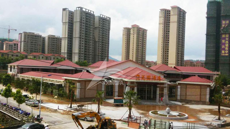 我們的專業(yè)施工團(tuán)隊(duì)精湛的技藝,確保了樹(shù)脂瓦在酒店工程中的完美安裝。每一片樹(shù)脂瓦都經(jīng)過(guò)精心挑選,為酒店打造了一個(gè)堅(jiān)固、美觀的屋頂。